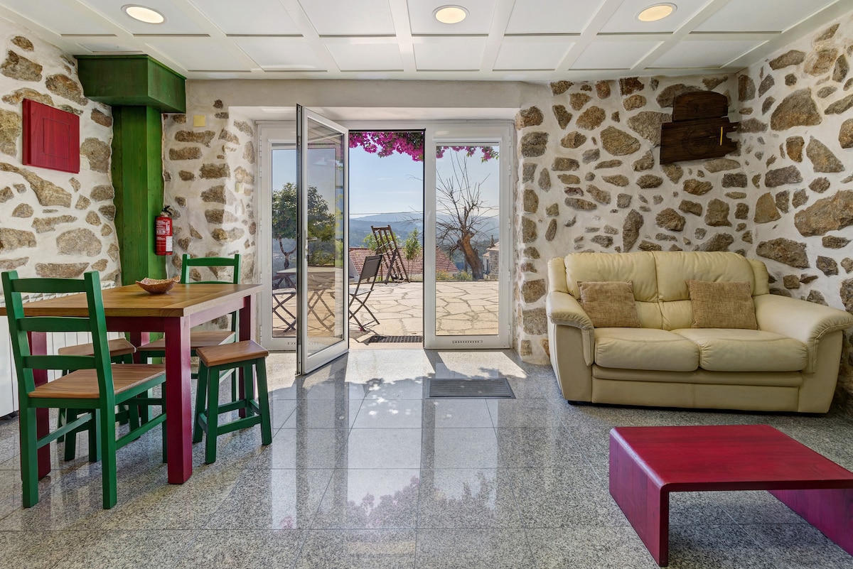 Esta cómoda casa rural se encuentra en el pueblo de Lindoso, en el corazón del Parque Nacional Peneda Gerês, región de Alto Minho. El pueblo de Lindoso es muy conocido por su castillo medieval y uno de los grupos más grandes de graneros típicos (“espigueiros”). Esta es una antigua casa de piedra junto a un antiguo molino de agua. Ambos han sido reconstruidos en armonía con la arquitectura tradicional de la región. Es una invitación para disfrutar de la paz y los paisajes del entorno rural. DESCRIPCIÓN: Una habitación doble con baño (ducha). Sala/comedor con TV. Equipado con estufa, microondas, cafetera y nevera. Ropa de cama, toallas y productos para el desayuno incluidos. Calefacción central, estacionamiento privado y una pequeña área privada afuera. La casa tiene chimenea de pellets.