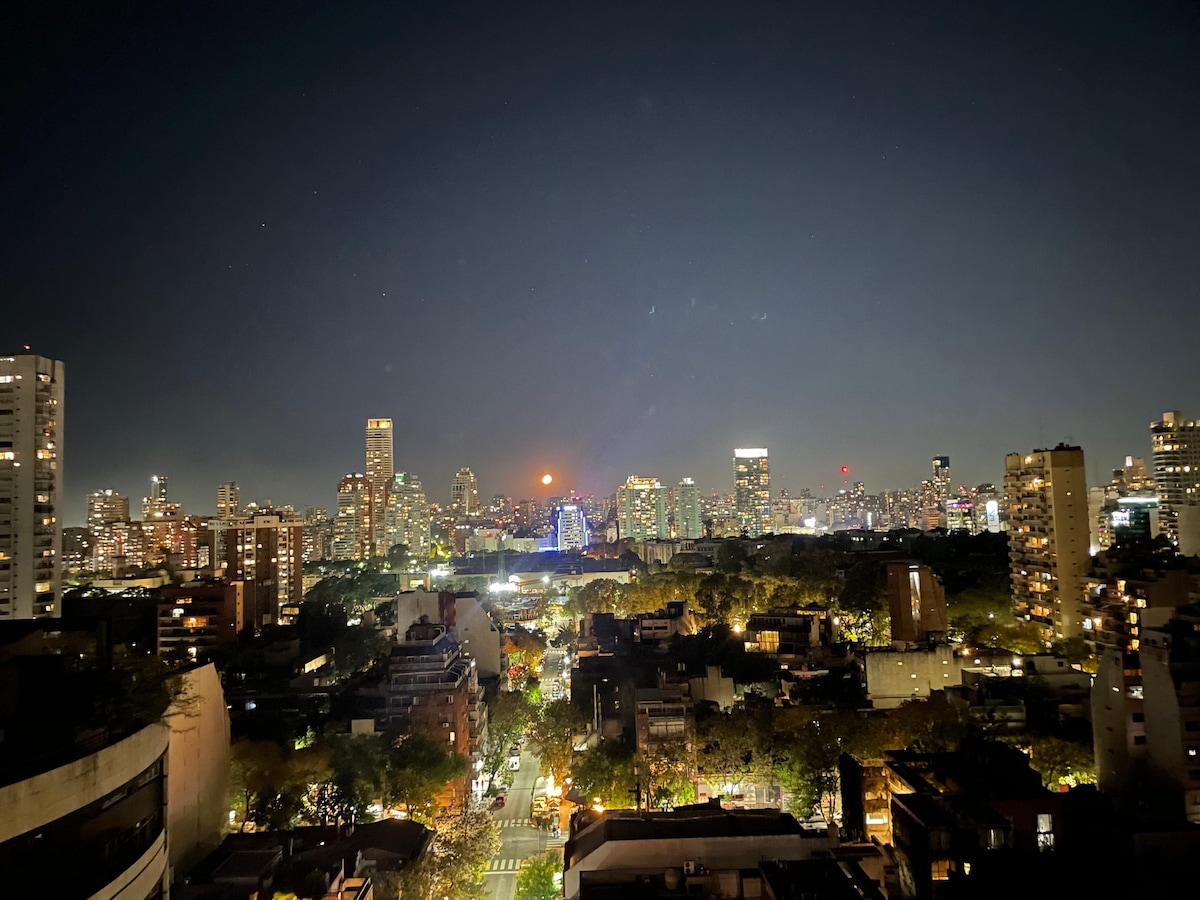 A pocos minutos del Aeroparque y a pasos de la Embajada de Estados Unidos, rodeado de cafés, restaurantes y los parques más imponentes de la ciudad. Con el encanto de una calle cortada por el terraplén del tren, que verás pasar desde el balcón. Podrás disfrutar del canto de los pájaros, los atardeceres y el aroma inconfundible de dos tilos añosos. Con solo caminar por la cortada te sentirás de vacaciones... o encontrarás más placentero tu trabajo a distancia.