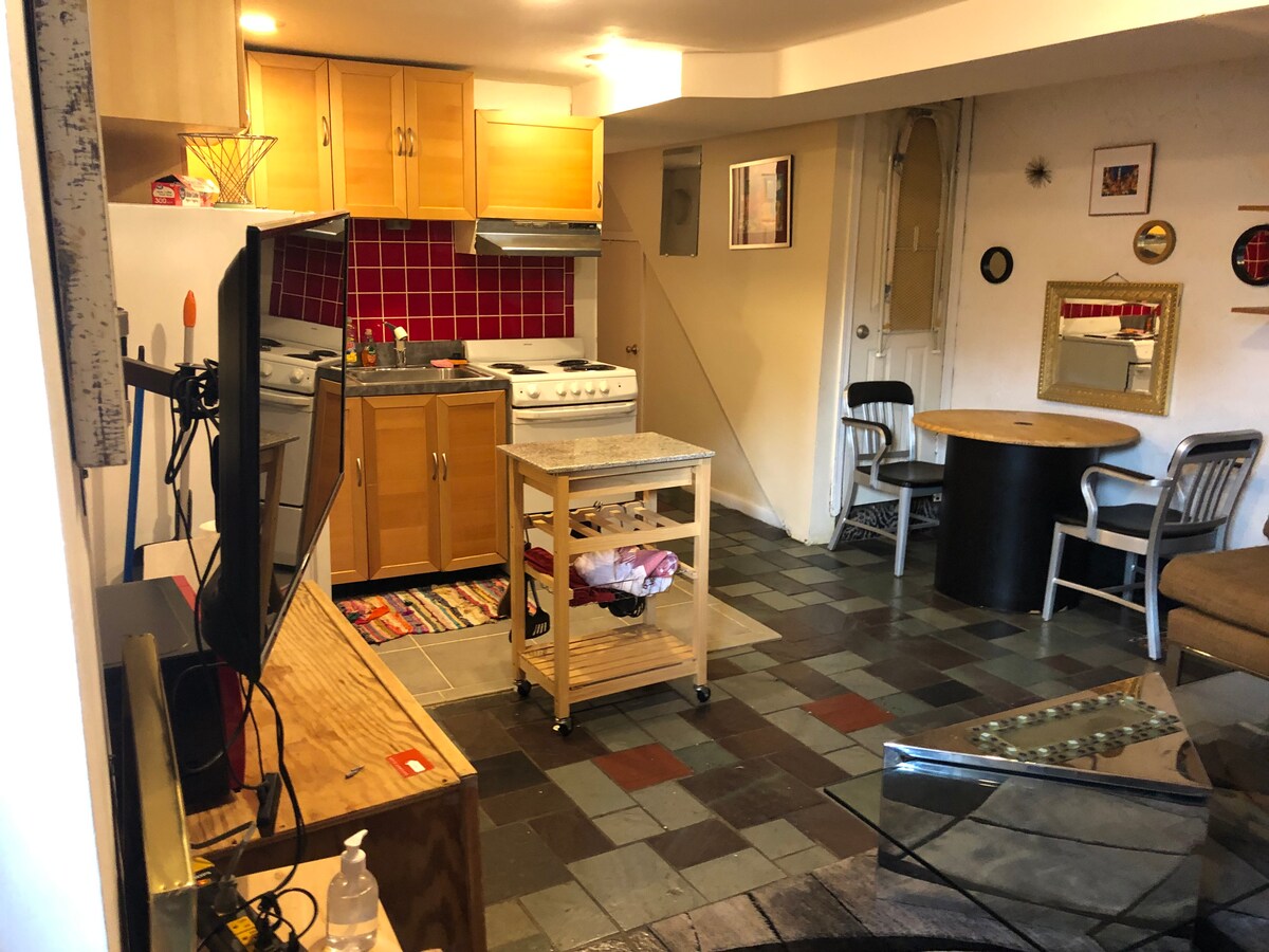 Alójate en una encantadora casa de carruajes de 1900 renovada a 4 manzanas del metro de Eastern Market en D.C. Disfruta de la historia local con comodidades modernas en esta casa de 1 dormitorio con una acogedora sala de estar con libros, juegos, un proyector y un sofá convertible. Una cocina totalmente equipada y una cómoda lavandería satisfacen todas tus necesidades. Arriba, te espera un dormitorio soleado con cama tamaño queen, TV grande, baño, escritorio y armario. Sal a un patio privado o explora los restaurantes, tiendas y lugares de interés cercanos.