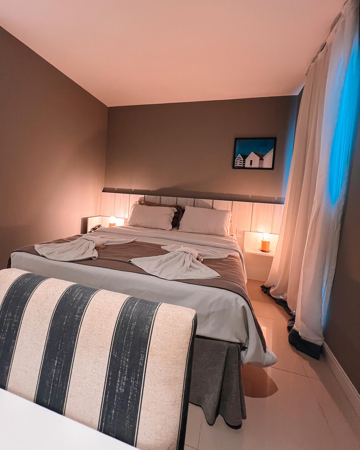 Ideal para famílias de até 8 pessoas (incluindo crianças e bebês), nosso apartamento é totalmente mobiliado e preparado para oferecer conforto e praticidade durante sua estadia. 2 quartos climatizados (ar-condicionado split e ventilador de teto) 1 suíte com cama de casal + cama de solteiro com auxiliar (acomoda até 4 pessoas) 1 quarto com 2 bi-camas que viram camas de casal (acomoda até 4 pessoas) 2 banheiros Sala de estar e jantar Cozinha equipada Varanda ampla 2 vagas de garagem