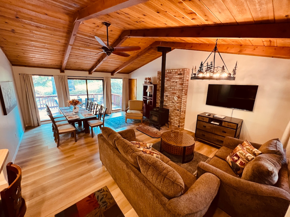 Welcome to our renovated 3BR/3BA modern mountain home, tucked in a peaceful wooded community in the heart of Arnold. Just minutes from Big Trees State Park, Lake Alpine, and Bear Valley Ski Resort, with award-winning local wineries nearby. The open-concept design features a fully stocked kitchen, large dining table, and cozy living area—perfect for relaxing or gathering with family and friends after a day of adventure.
