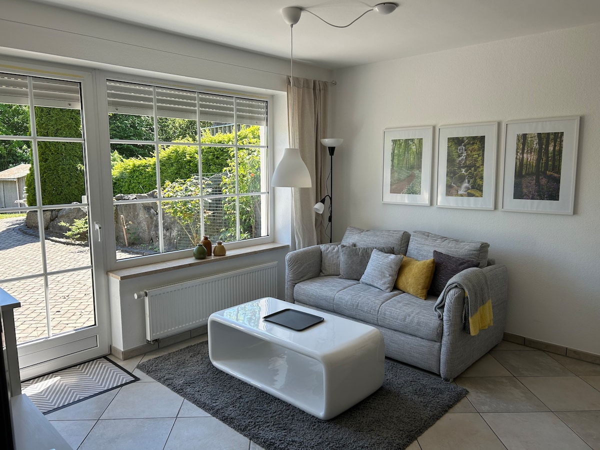 Ponte cómodo. Este elegante apartamento al borde del bosque es tu refugio en el Sauerland: situado en una zona tranquila, con un diseño moderno y pensado al detalle. Justo fuera de la puerta: senderos, naturaleza y silencio. Interior: el diseño se une a la comodidad, ideal para familias, parejas, viajeros solitarios o mentes creativas que buscan un descanso inspirador. P.D. El sofá del salón se puede convertir en una cómoda cama doble adicional.