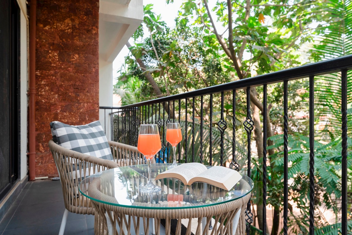 Hyacinth House cerca de Baga Beach es un apartamento de 1 dormitorio y sala de estar con vistas a la piscina en la planta baja con un exuberante jardín, a solo 8 minutos de la vibrante playa de Baga. Ubicado en un complejo tranquilo y seguro, pero cerca de los mejores restaurantes y clubes de North Goa, ofrece lo mejor de ambos mundos. Totalmente equipado con comodidades modernas, como Internet de alta velocidad con respaldo de energía, 2 aires acondicionados, una lavadora y una cocina funcional. Perfecto para familias o amigos que buscan un hogar relajante lejos de casa. ¡Reservaciones solo a través de Airbnb!