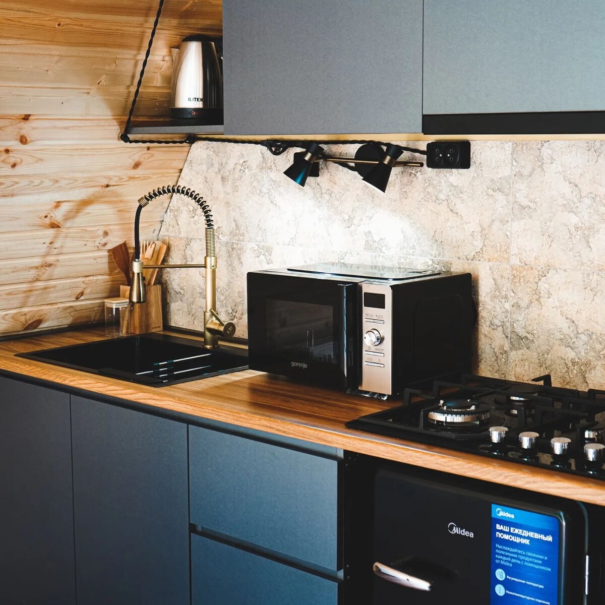 ● Electric stove, kettle and everything you need to cook ● 15 Mbps stable internet ● High-quality bed linen, bathrobe and towels ● Stunning view from еру panoramic window in the bedroom ● Large private area for guests only (2000 sq.m) ● Free parking on site