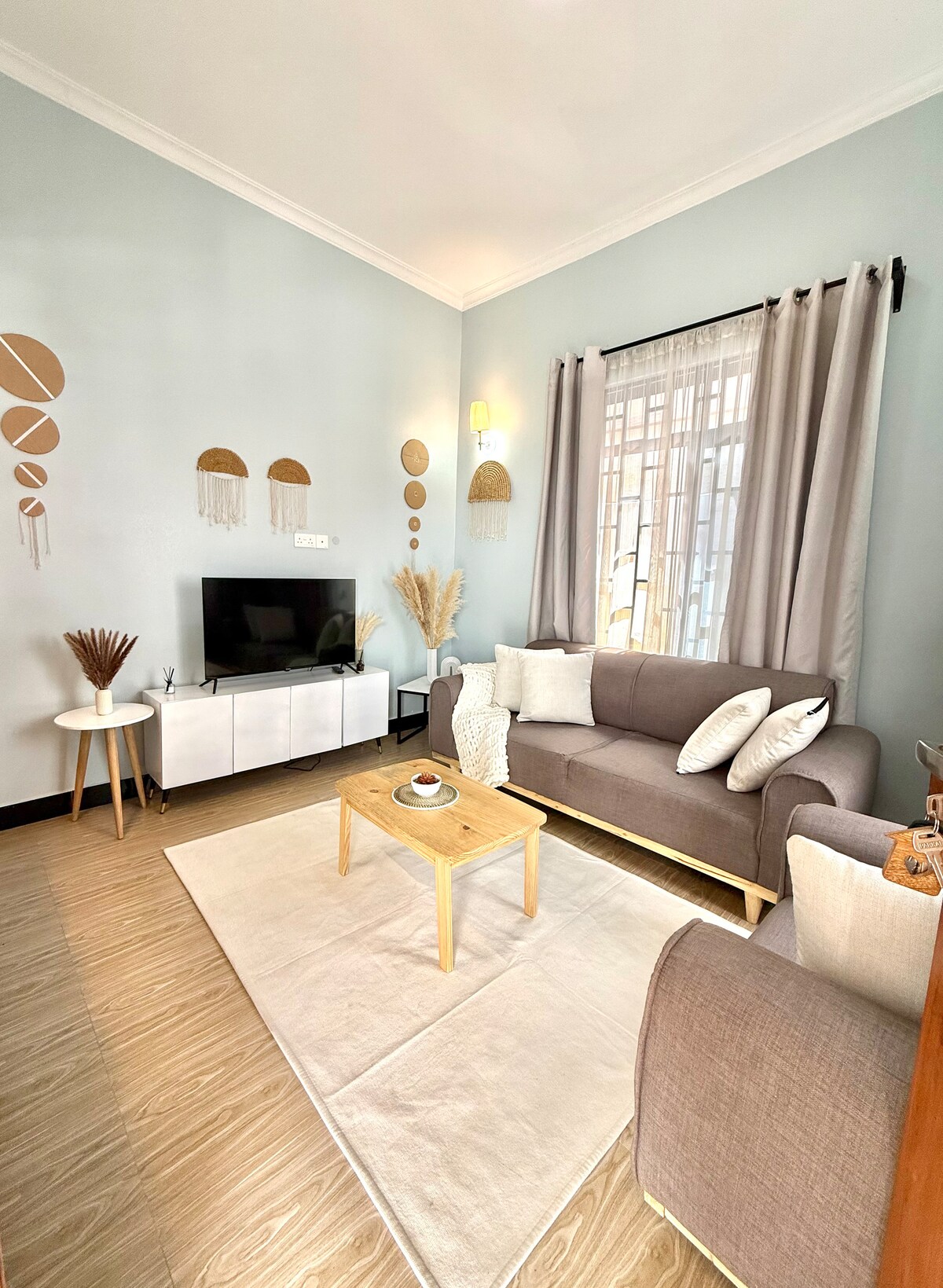 Welcome to your cozy boho-style studio retreat in Moshono. Relax in a sun-drenched boho studio, where cozy comfort, modern style, and natural light create the perfect retreat for couples, solo travelers, business guests, and long-stay expats. Enjoy a comfortable sleeping area, a cozy dedicated workspace, fast Wi-Fi and free secure parking. Breakfast essentials including bread, eggs, milk, yoghurt, and fresh apples are provided for a relaxed start to your day.