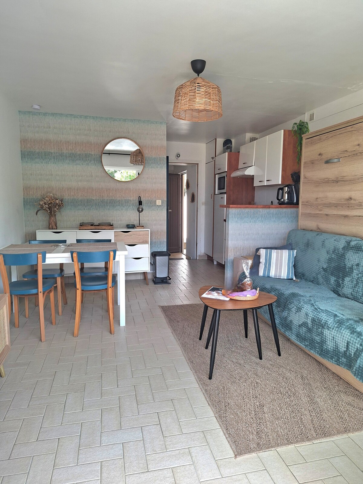 Idealmente situado en una bonita residencia segura, sabré hacer de su estancia un momento de descanso agradable. En el corazón del puerto de Crouesty que ofrece muchos restaurantes y tiendas, a dos pasos de la playa de Fogeo y de la Thalasso del Miramar, soy un elegante estudio de 24 m ² con capacidad para 4 personas. Reformado en abril de 2023, ofrezco buenas prestaciones y unas vistas impresionantes. Definitivamente mi encanto te seducirá... Limpieza y ropa de cama y de baño no incluidas. 😉