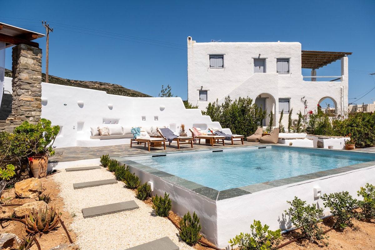 Hercules House: villa con vistas al mar en Pirgaki Paros