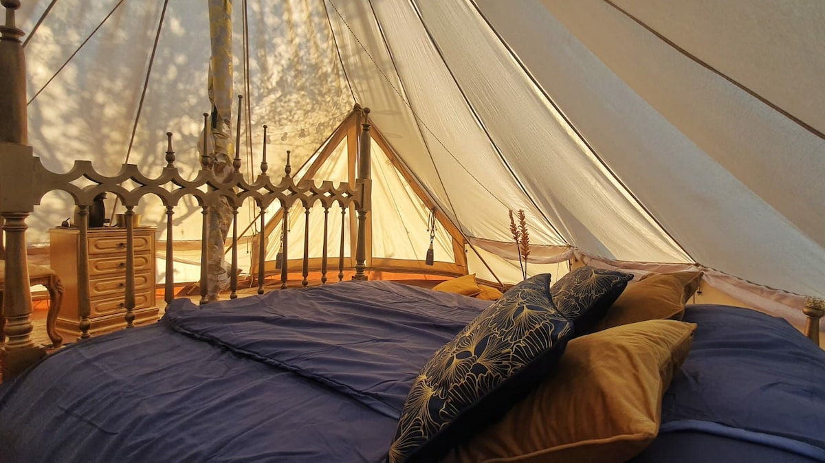 Unser wunderschönes Tipi, Durchm. 5 m, steht auf einem Holzdeck mit freiem Blick Richtung Sonnenuntergang. Das Bett mit der hochwertigen Matratze und die unglaublich gute Luft im Tipi lässt einen wunderbar schlafen..Ein antiker Schreibtisch, Kerzen und das Ambiente im Tipi schaffen einen romantische Atmosphäre - probiert es aus!!! Die Naturtoilette und Aussendusche stehen in der Nähe. Wir verwenden Star-Link und haben dadurch sehr schnelles Internet😊