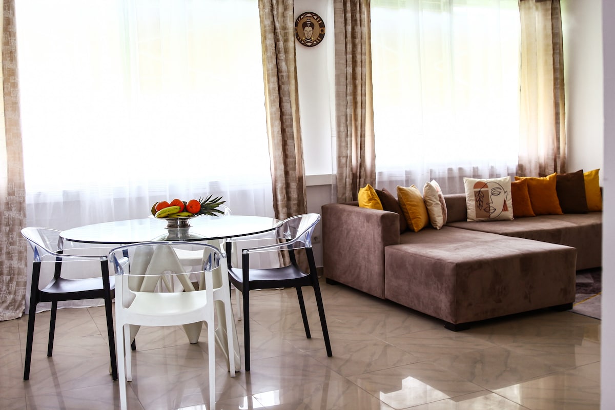 🏅Los alojamientos más populares del 10% en Airbnb. Disfruta de un elegante apartamento de 3 dormitorios en el corazón de la Zona 4. Luminoso, elegante y acogedor, cuenta con una decoración de buen gusto, tonos suaves, detalles dorados y arte local. Perfecto para relajarse o trabajar de forma remota, con ropa de cama de calidad hotelera, una cocina totalmente equipada y limpieza diaria incluida. La seguridad las 24 horas, los 7 días de la semana, garantiza la tranquilidad durante tu estancia en uno de los barrios más vibrantes de Abidján.