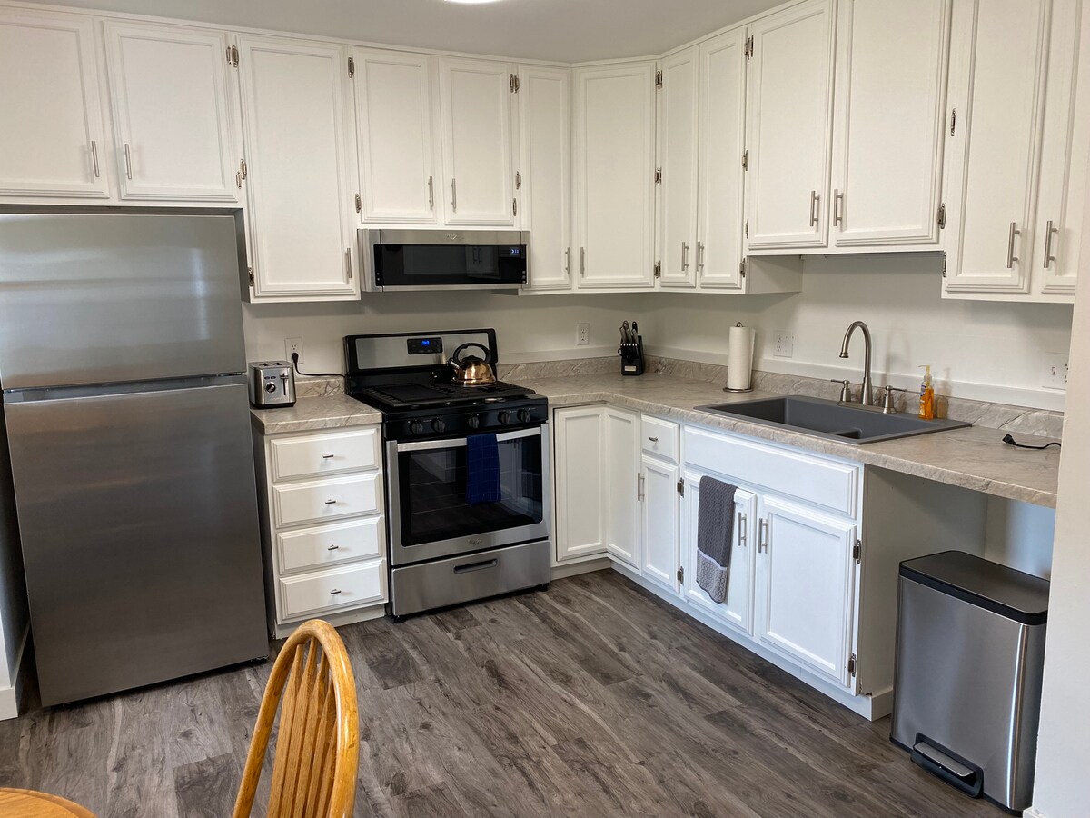 ¡Recién reformado, con dos dormitorios y un baño, ubicado en el corazón del centro de Munising! Este hermoso apartamento tiene vistas al puerto deportivo de la ciudad y a los cruceros de Pictured Rocks. ¡Estarás a pocos pasos de tiendas de regalos, restaurantes, bares, cafeterías y del parque Bayshore! En verano, Bayshore Park tiene mercados de agricultores los lunes y música en directo los martes. El parque es también donde se llevan a cabo todas las festividades del 4 de julio, ¡incluso se pueden ver los fuegos artificiales desde las ventanas de la sala de estar!