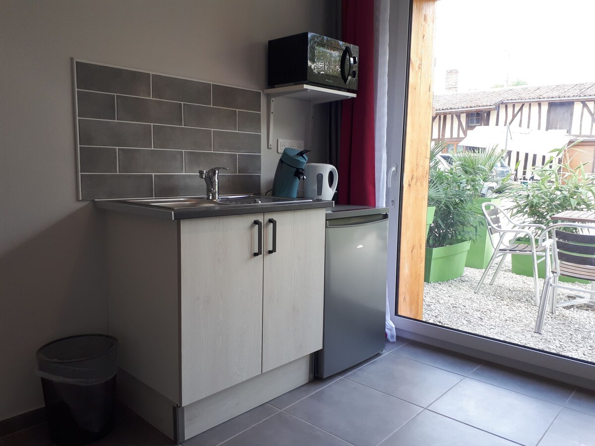 Encantador estudio de planta baja, luminoso e independiente de 25 m2 .Calma y con vistas al jardín. Vivienda nueva, bien aislada Gran terraza con vistas al jardín Ofrecemos desayuno y mesa de huéspedes con reserva que se sirven en su alojamiento o en su terraza . Estacionamiento asegurado por una puerta eléctrica. Ideal para motos, bicicletas , coches de colección , profesionales , remolque , barco, jetski...
