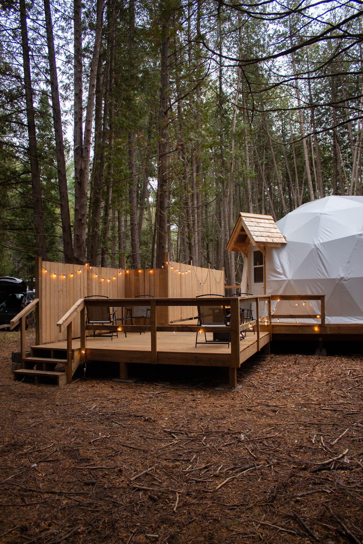 El Meadow Dome es un oasis privado rodeado de 98 acres de hermosa naturaleza que tendrás para ti solo. •NUEVA piscina natural • Sauna de cabina de cedro • Jacuzzi sin productos químicos •Senderos para caminar •Chimenea interior. • Fogata al aire libre Cerca del Parque Algonquin Rodeado de miles de lagos. Meadow Dome es un lugar ideal si quieres relajarte y disfrutar de la naturaleza en su máxima expresión. Meadow Dome funciona con energía solar, con calefacción de madera y agua potable. Hay un baño exterior cercano.