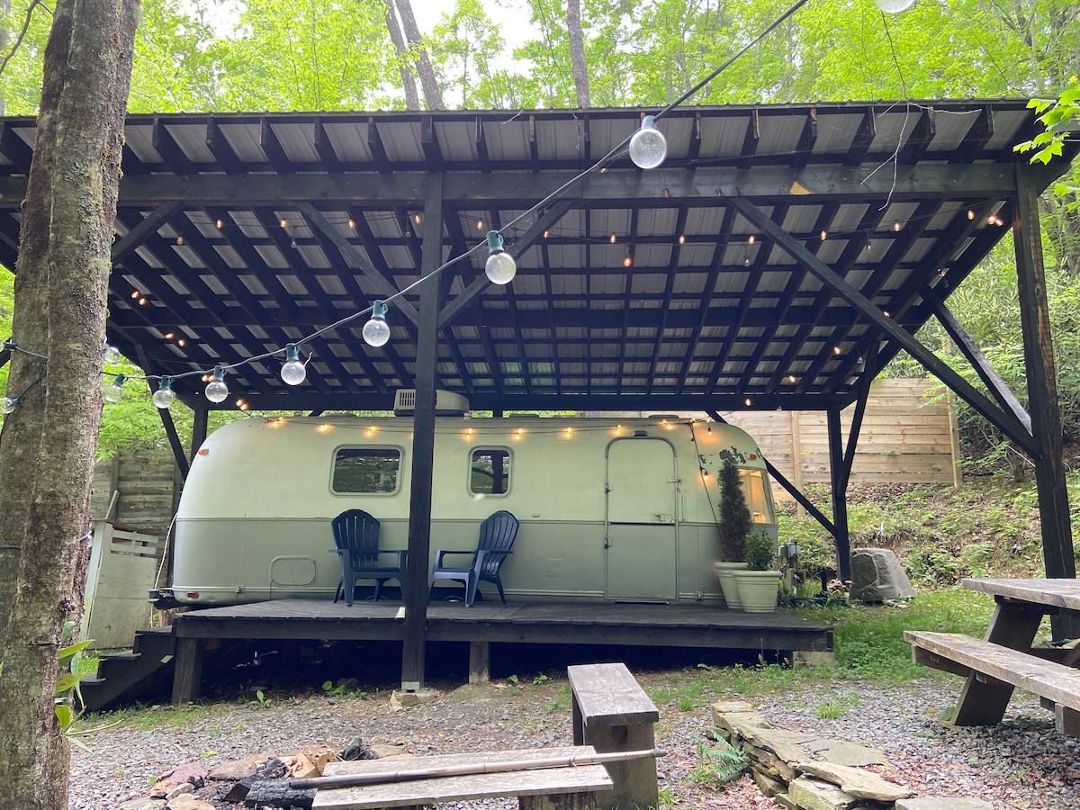 Como su nombre indica, The RhodoDen es un acogedor Airstream Argosy de 1974 ubicado entre los rododendros de las montañas Blue Ridge. Ubicado a lo largo de un arroyo con un anillo de fogata y vistas a Watch Knob, este es el mejor «glamping». RhodoDen ofrece un lugar idílico para relajarse y es un gran campamento base para aventuras de senderismo, restaurantes y vida nocturna en Asheville y Black Mountain, ambos a solo 15 minutos. ¡Además, se admiten mascotas! Actualización 3/24: ¡Construimos un techo!