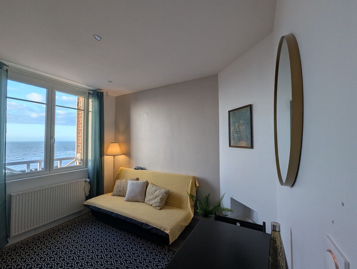 Apartamento totalmente equipado, situado en el primer piso de una bonita villa con vistas al mar... le ofrecerá un espectáculo de colores a cualquier hora de la estancia, pero también de la habitación. Cambio de escenario garantizado!!!Idealmente situado entre Mers-Le Tréport y Saint Valéry- Le Crotoy, le permitirá descubrir nuestra hermosa región llena de naturaleza y sabores. Es el lugar soñado para relajarse con la familia o los amigos.