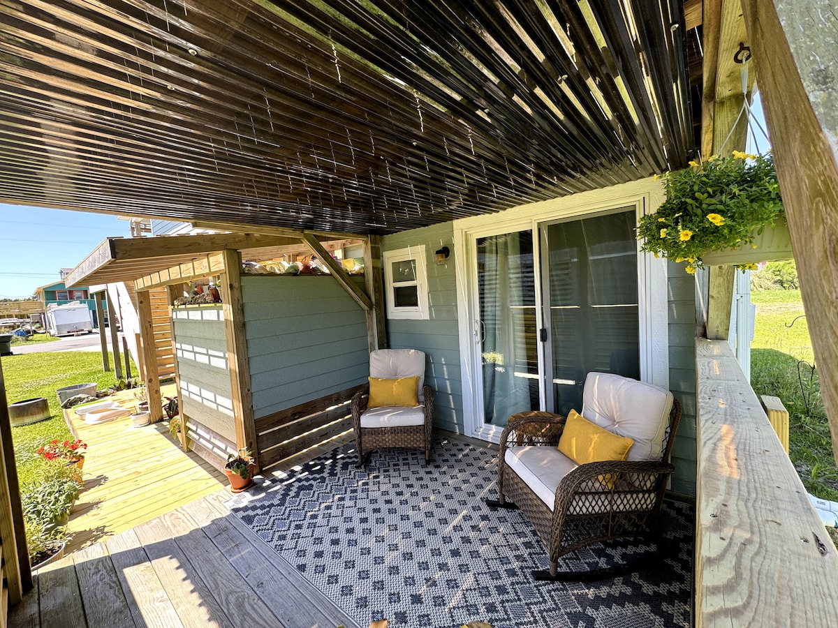 ¿Estás buscando un alojamiento para relajarte mientras estás de vacaciones en la isla Hatteras, Carolina del Norte? Nuestra acogedora suite de invitados está cerca de la playa, el muelle de Avon, restaurantes, cafeterías y bares locales (muchos a poca distancia a pie). Tenemos un hermoso patio y espacio en la terraza para que te relajes después de largos días en la playa o explorando nuestra hermosa isla.