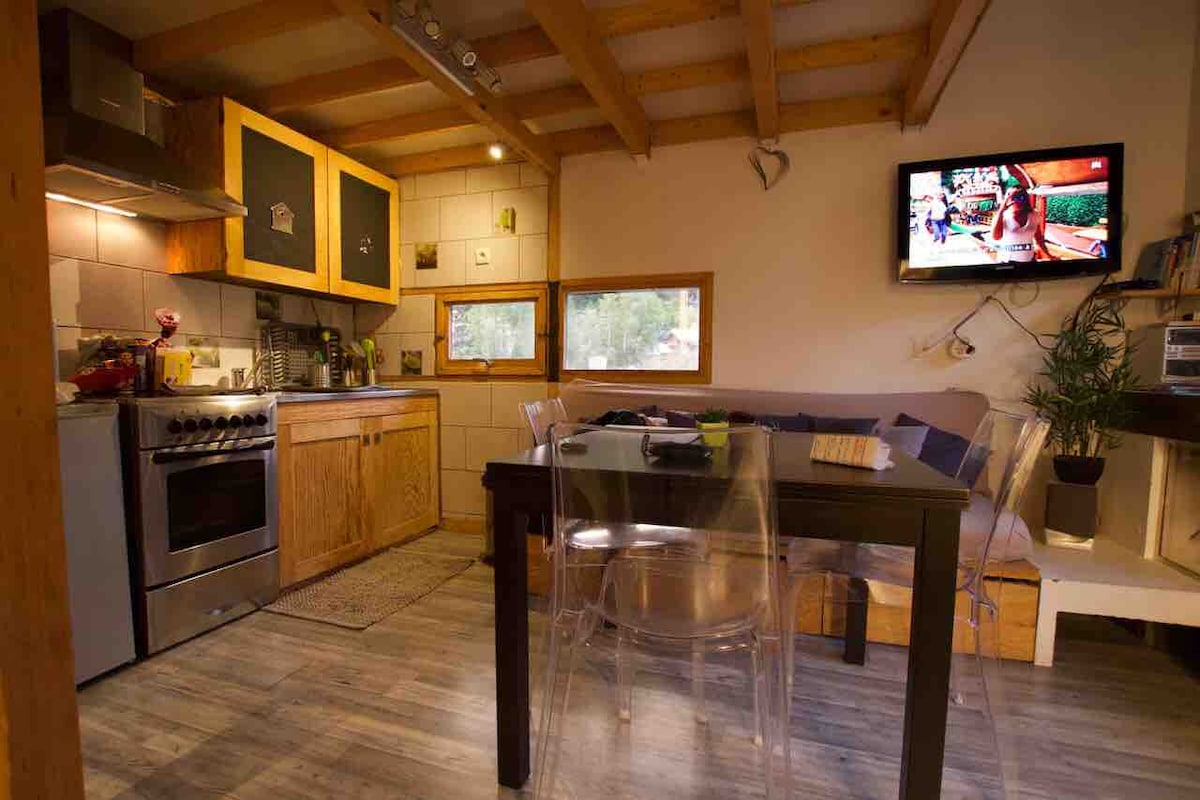 Estudio cabaña reformado de 17 m2, ideal para 2 personas, pero con capacidad para 4 personas Dispone de 4 camas, un sofá cama doble en el salón y 2 camas plegables en la entrada A 2 minutos a pie de los remontes (150 m) y cerca de todos los comercios, una parada de transporte gratuito está justo debajo de la residencia El apartamento dispone de lavavajillas, cafetera, tostadora y hervidor de agua, así como de armario para esquís Se incluyen sábanas, toallas y limpieza Wifi gratuito
