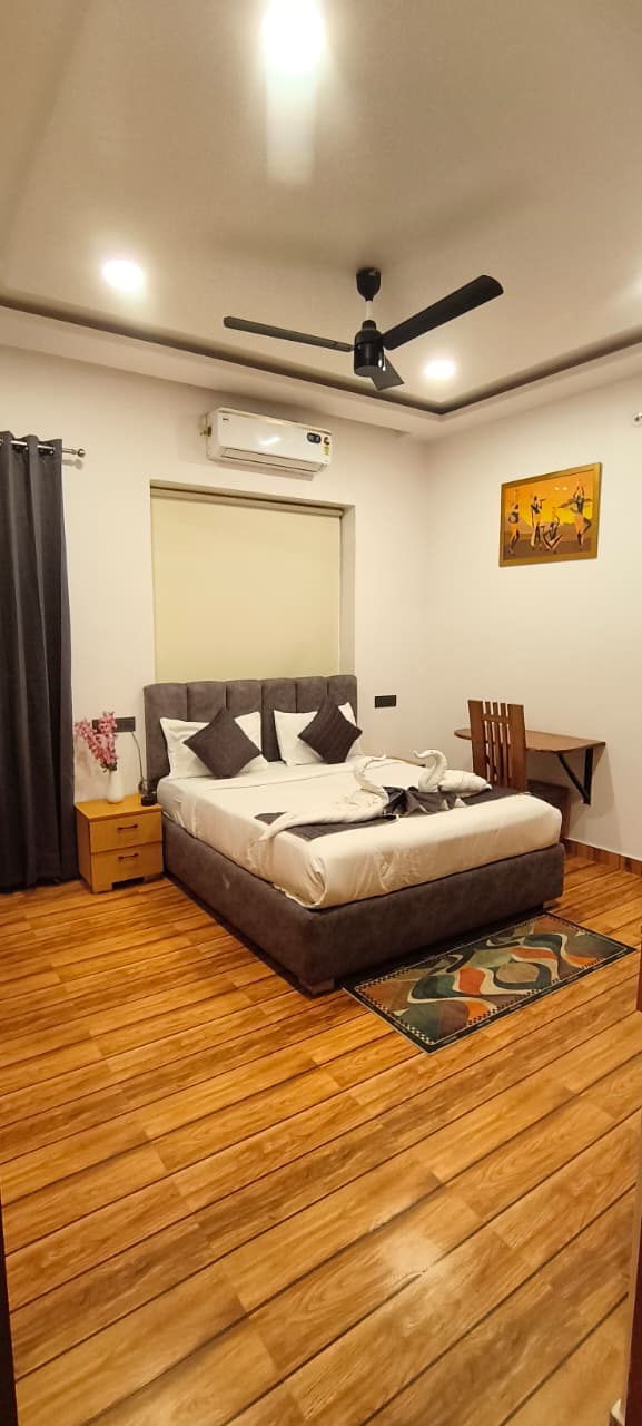 Enjoy a stylish experience at this centrally-located place. Walking distance from Ram Mandir. On Ram Path main road, easy to find. Daily market and restaurants at walking distance. Spacious 3-room home offering comfort after a day of darshan. Perfect for families seeking convenience and serenity.