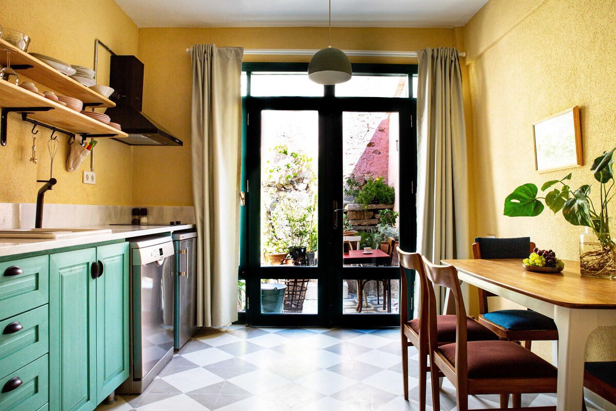 • Puntuación de caminata 80 (recados diarios realizados a pie) • En el exclusivo y seguro vecindario de Cunda/Ayvalik - Cocina completamente abastecida + equipada • En la lavadora y la secadora en el lugar, 3 chimeneas, - Servicio de limpieza gratuito para los huéspedes que se hospeden 7 noches o más • Increíble jardín con terraza: vistas al mar desde el piso superior. • Pinturas coleccionables, alfombras, iconos, documentos antiguos, artefactos, biblioteca •