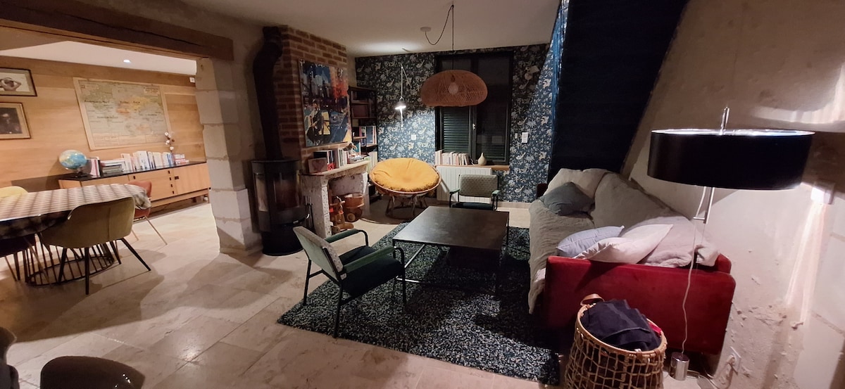 Casa semi-cueva con encanto romántico, idealmente situada entre Tours y Amboise que incluye: - Sala de estar troglo: cocina equipada (desayuno para estancias de 1 y 2 noches), sala de estar y salón. - Suite no troglo: habitación y cuarto de baño, ropa de cama Emma de 160 cm, ducha italiana. - Espacio de bienestar privado ilimitado con spa, sauna de infrarrojos y mesa de masaje (masajes corporales a petición y opcionales con un especialista profesional en tratamientos de bienestar)