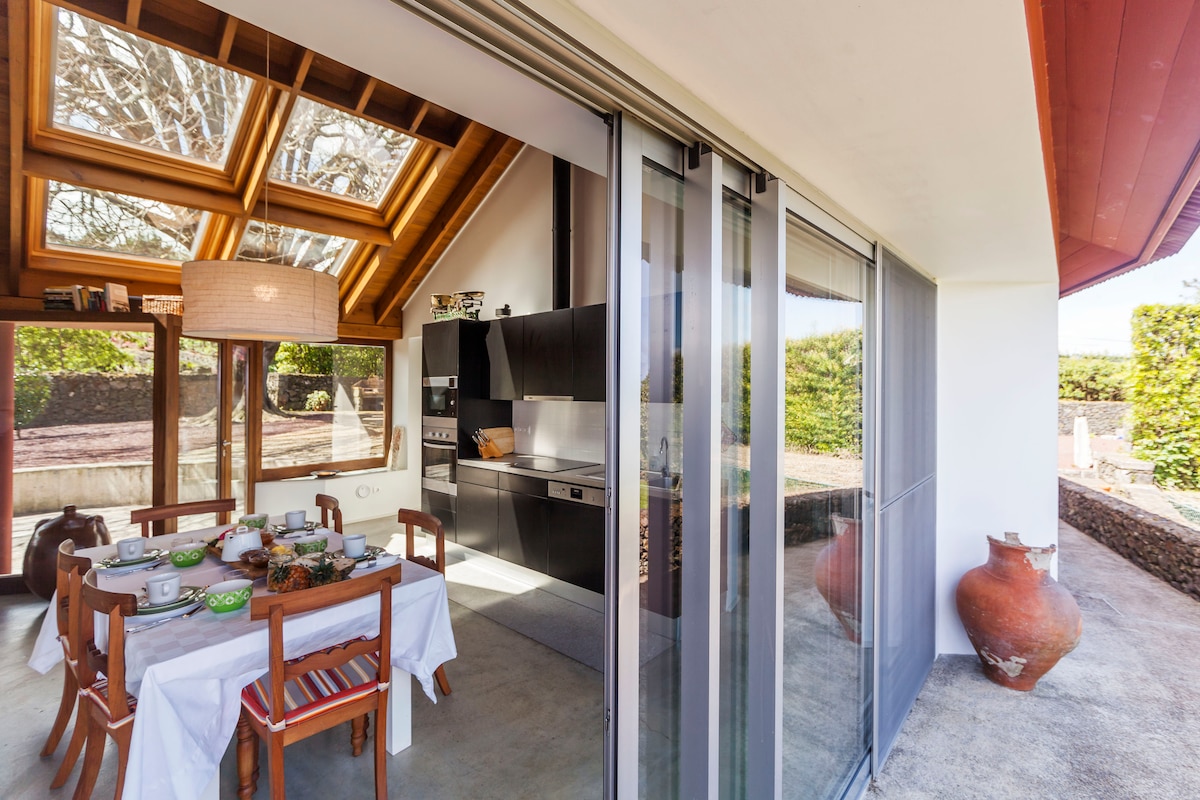 One of a Kind | Luxury Retreat. Villa 5 habitaciones, zona privada y segura, rodeada de invernaderos de piñas. A 5´en coche del centro histórico, fácil acceso a playas. Ubicación privilegiada en Ponta Delgada, con vistas al mar, la montaña y la Lagoa do Fogo. El entorno invita a dar paseos (parques naturales a 5´ a pie) o practicar yoga (muy popular en la villa). El interior fomenta la interacción social (espacio abierto) y la distribución de las habitaciones garantiza la tranquilidad al dormir