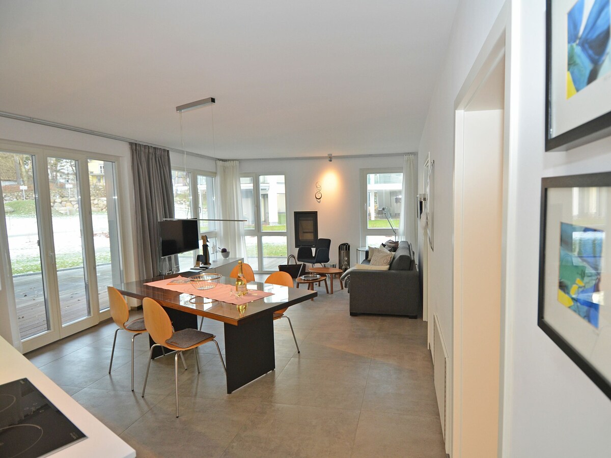 Moderno apartamento de 2 habitaciones en una ubicación excelente de Sellin Villa Louisa 50 Moderno apartamento de 2 habitaciones (aprox. 54 m²) en el segundo piso de la Villa 2 con 1 dormitorio, 1 baño y balcón orientado al sur. DESTACADO: uso gratuito durante todo el año de Ahoi Therme General Departamento de 2 habitaciones con una sala de estar de aprox. 54 m² para un máximo de 4 personas El departamento está ubicado en el segundo piso. Sala de estar y comedor: - Sala de estar luminosa. - en el salón hay un acogedor sofá con función para dormir (base de listones