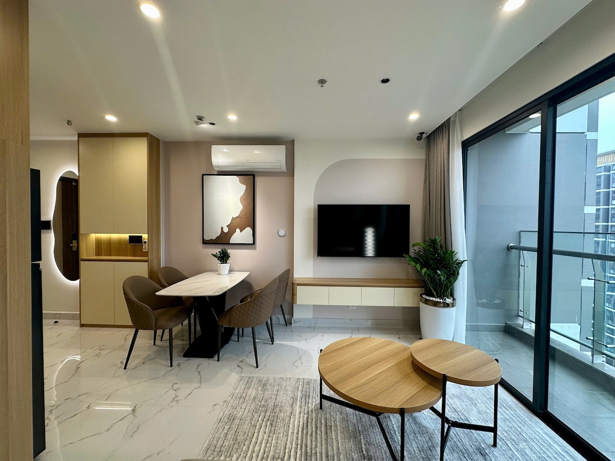 Apartamento de lujo de 5* The Opera Residence Corner de ChiHome - Vista al río CBD Distrito 1. La Ópera Metropole Thu Thiem - Torre B, Scala, nivel 1x unidad 11 - Tamaño: 81 m2 (unidad de esquina) - Incluye 2 dormitorios, 2WC, cómodos para alojarse de 2 a 4 personas. - Televisión inteligente de 65 pulgadas con Netflix y YouTube - Sofá, sillón, mesa de té. - Mesa de comedor con 4 sillas - Utensilios de cocina completos. - Internet inalámbrico de alta velocidad disponible. • Aire acondicionado para toda la casa - Acceso 24/7 al edificio, los 7 días de la semana.