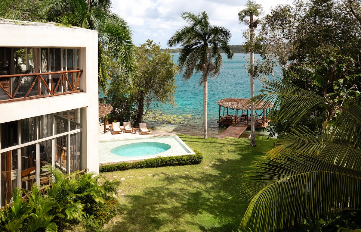 Despierta y entra directo a la laguna turquesa de Bacalar, a solo metros de tu puerta - Esta villa ecológica privada te invita a bajar el ritmo: remar al amanecer, descansar en hamaca y cenar bajo las estrellas. Detalles artísticos y jardines te rodean, con la selva ofreciendo calma y privacidad. Totalmente equipada con Wi-Fi Starlink, ideal para descansar, reconectar y simplemente ser. Camino selvático sin pavimentar, maneja despacio y disfruta.