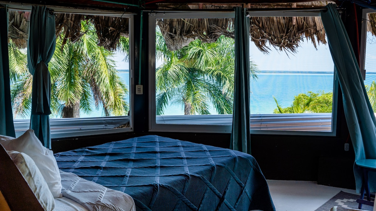 Manatí es una habitación encantadora en un primer piso con unas vistas espectaculares de la laguna. Recientemente rediseñado por el artista principal de Bacalar: @laka_rem. Y estás a solo 20 metros del acceso privado a la laguna BOA BOA con 2 muelles formidables. Rest feeling fresh with the Air Conditioning system. Manatí es un cuarto en un primer piso con vista a la laguna. Recientemente rediseñada por el mejor artista integral de Bacalar: @laka_rem.