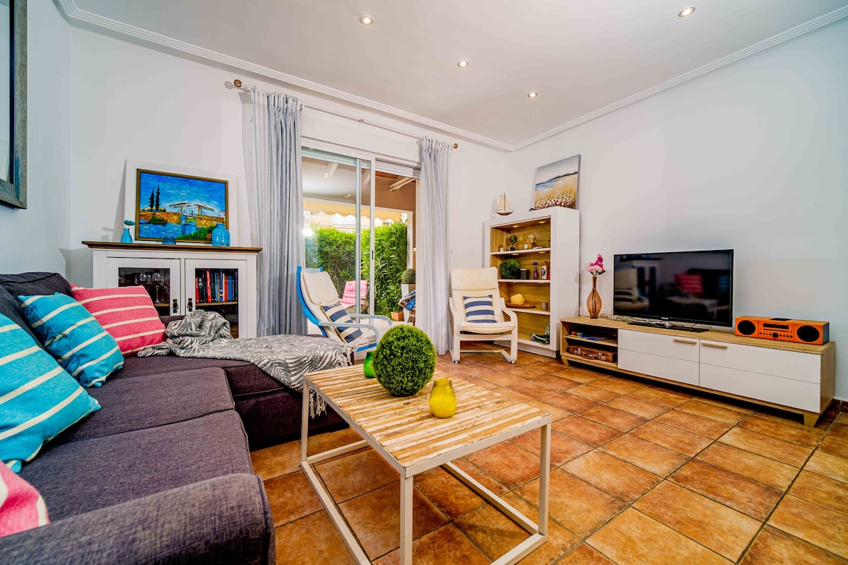 Un apartamento/adosado a segunda línea del mar, 3-5 mins andando. Está muy bien ubicado teniendo el paseo del mediterraneo al lado junto con chiringuitos y restaurantes. La playa de rocas en el paseo es accesible. El canal Nou Fontana está a unos pasos y andando por el canal a unos 8 minutos está La playa El Arenal y sus zonas de comercio y restauración. Dispone de amplio garaje privado. La zona común es amplia y cómoda. El apto comunica directamente con la piscina y ademas no da a poniente.