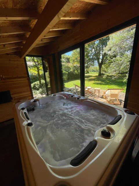 Relájese en este alojamiento tranquilo y elegante. Con una decoración cálida y cuidada, se sentirá a gusto en este chalet que combina madera y hierro, lo rústico y lo moderno. Ubicado en la parte superior de un pequeño pueblo, la tranquilidad y el panorama le harán pasar una estancia relajante. Proyecto orientado a la ecología con madera y materiales locales. Chalet situado a solo 15 minutos de la ciudad termal de Luchon y a 30 minutos de las estaciones. Bañera escandinava en la terraza (suplemento 20 €/día)