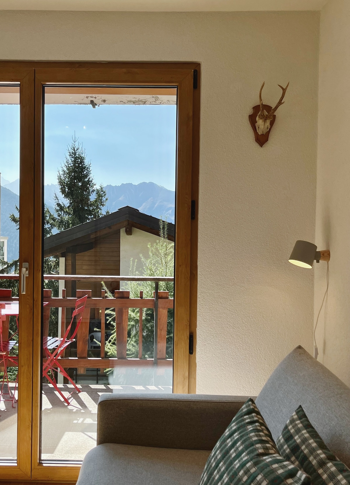 El estudio In-Alpes se encuentra justo a las afueras del centro de la estación de esquí Haute-Nendaz, en plena naturaleza, en la planta baja de un chalet construido en 1930 que fue completamente renovado en 2018. La cama plegable hace que este estudio sea único, con una vista de 48 km al valle del Ródano desde el momento en que abres los ojos. En invierno, el estudio te encantará con la acogedora chimenea y la calefacción por suelo radiante; en verano, la terraza de piedra natural te invitará a quedarte afuera y mirar hacia el valle o contemplar las estrellas.
