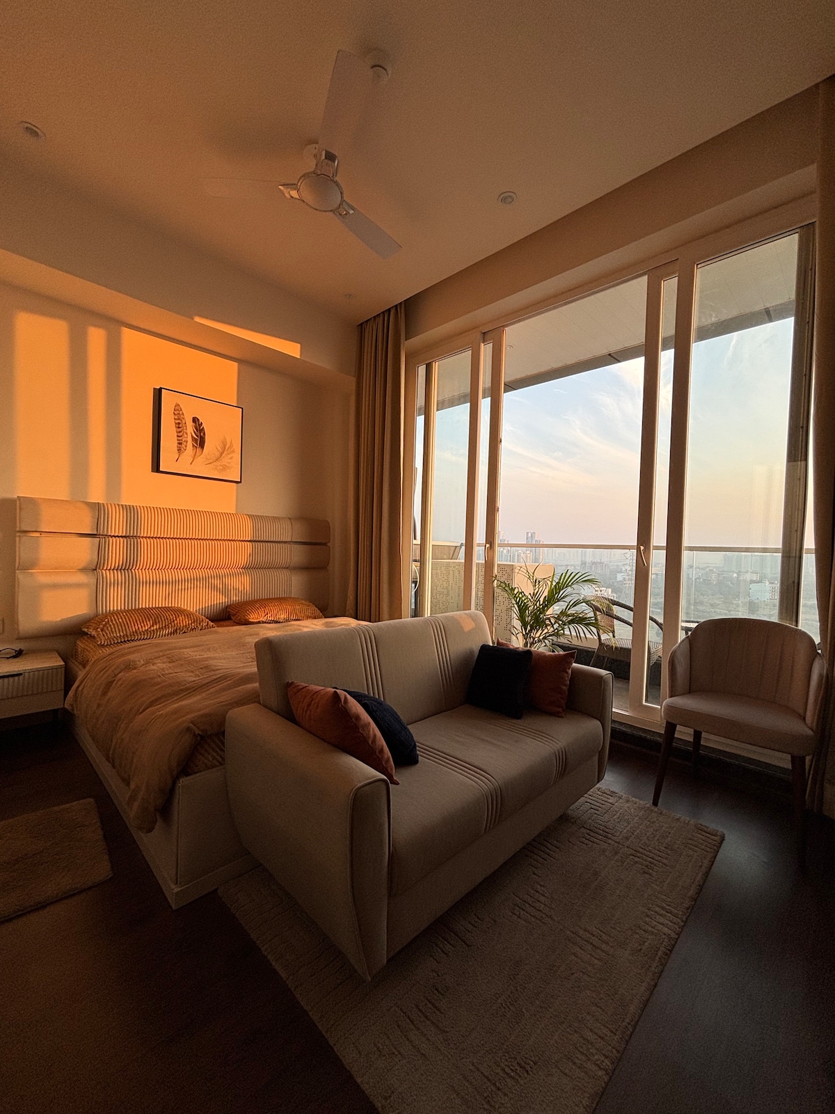 Welcome to Luxury private studio on 11th floor at Satya The Hive, Sector 102, Gurgaon. This beautifully designed private room features a serene patio with planters and swings, a private Jacuzzi ideal for couples offering the perfect setting for relaxation, and a private entrance for complete privacy. Includes a fully equipped kitchenette, luxurious private washroom is designed with modern fittings & beautiful mirror & essential toiletries. Perfect for a romantic getaway or a peaceful city stay.