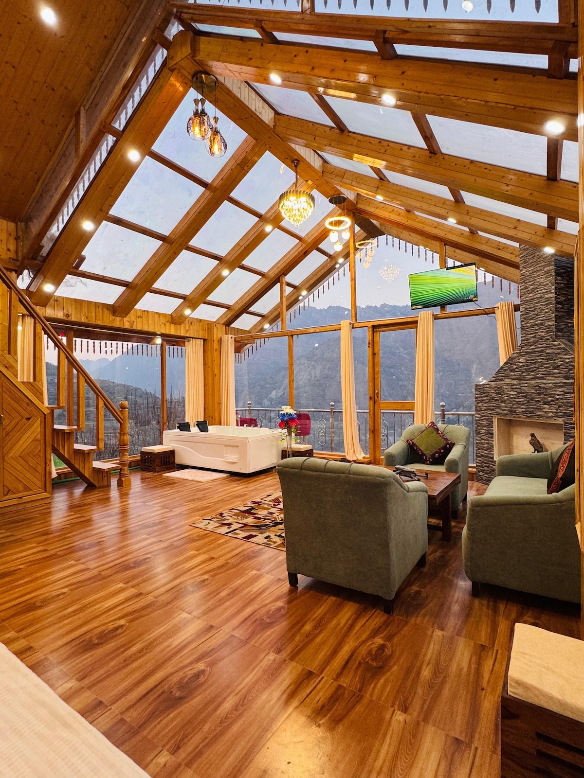 Enclavada en la prístina naturaleza del Himalaya, nuestra casa del árbol dúplex de lujo ofrece un refugio único para quienes buscan serenidad y sofisticación. Diseñado para viajeros exigentes que buscan una experiencia inmersiva en la naturaleza sin renunciar a la comodidad, este encantador refugio redefine el lujo en la montaña. Disfruta de una comodidad superior en nuestra lujosa casa del árbol dúplex, que cuenta con un jacuzzi privado en el baño, que ofrece una relajación relajante con impresionantes vistas a la montaña.
