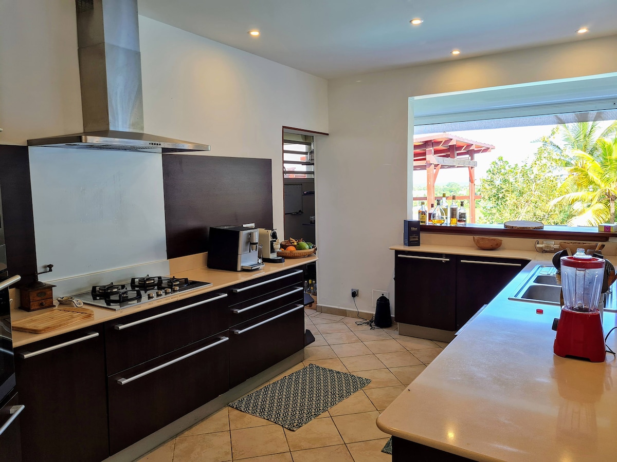 Casa , vistas 180° al mar Caribe. Playa a 50 metros. Cocina totalmente equipada (placa, microondas, lavavajillas, lavadora, etc.), aire acondicionado en las habitaciones, gran terraza de 50 m2. Bar abierto en el porche. Cubierta con solárium y barbacoa. Amplias habitaciones con armarios empotrados. 2 baños, 2 aseos. Salón y comedor en el porche. Wifi gratuito (fibra) Cerca de una carretera transitada que provoca ruido de coches durante el día. Este inconveniente desaparece por la tarde y la noche.