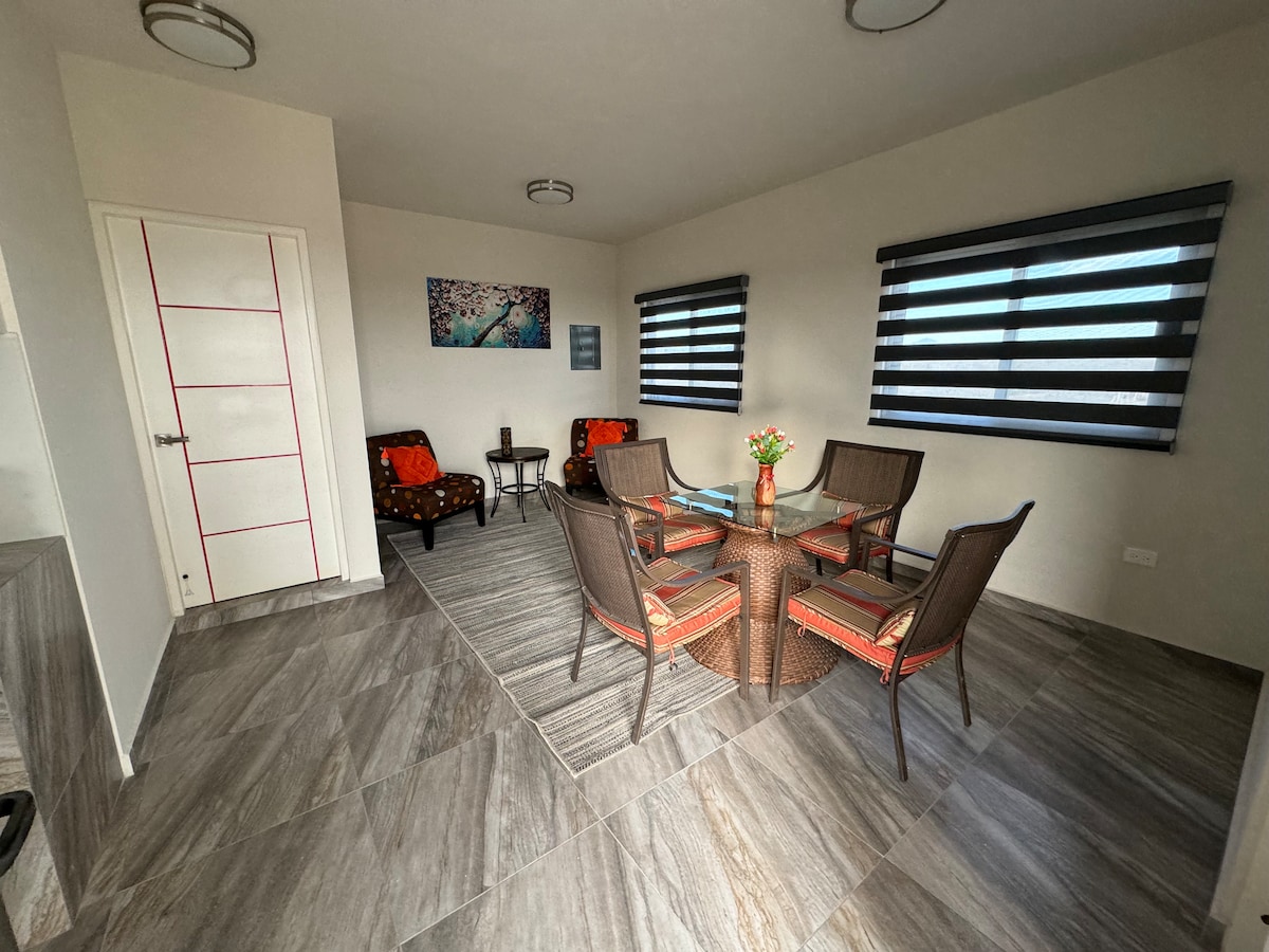 Acogedor departamento nuevo a solo 2 min del Malecón. Ideal para relajarte o explorar La Paz. Cuenta con A/C, Wi-Fi rápido, TV, cocina equipada y kit de playa. A 5 min caminando de restaurantes, museos y supermercado. Las playas a 15 min. ¡Sal y disfruta vistas al mar de Cortés! Como anfitrión local, estoy disponible para ayudarte en todo lo que necesites.