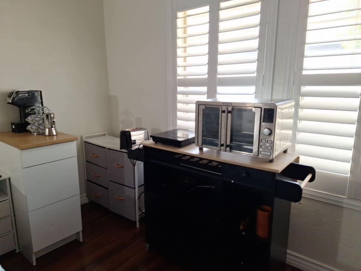 Spacious and stylish bedroom with full bed, desk, and reclining chair. Private entrance from the back yard, and adjacent private bathroom. Excellent location in central Bakersfield, near downtown as well as CA-99 and Westside Parkway.