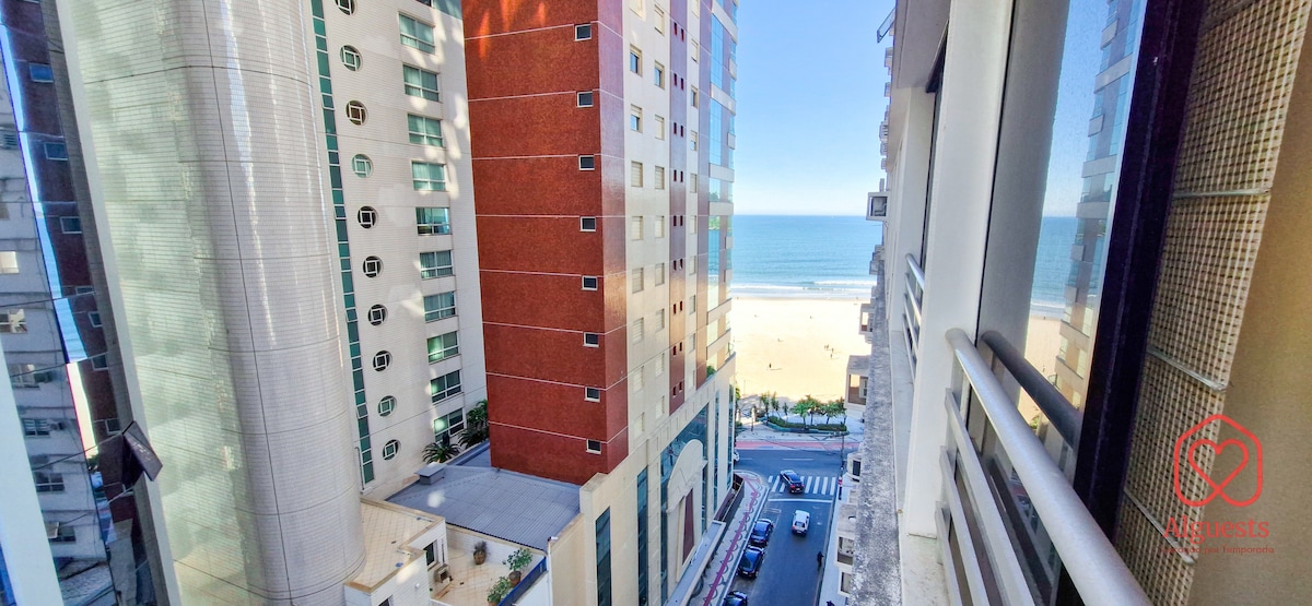 Hermoso Apartamento a 30 metros de la Playa, con Vistas al Mar y Ciudad, amplio, cómodo, ventilado, climatizado, equipado, redes de seguridad en las ventanas y balcón. La sala con TV, comedor con asador y cocina con espacio para comer son amplios e integrados, permitiendo la interacción entre todos los huéspedes. El balcón mira al mar y a la ciudad, con mesa y sillas, brindando momentos increíbles, como desayunar, happy hour, charlar o trabajar.