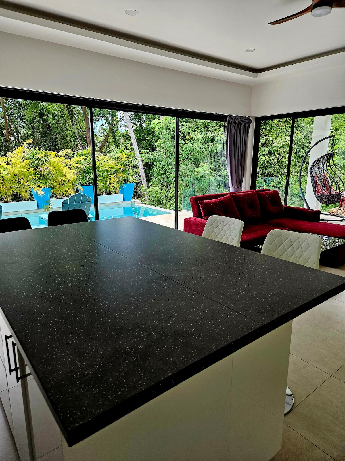¡Bienvenido a Villa Melo, tu mejor oasis de vacaciones enclavado en medio de las encantadoras colinas de Chaweng Noi! Relájate en el paraíso, rodeado de impresionantes vistas y serenos paisajes selváticos. Mientras disfrutas de tu refugio aislado, estás a pocos minutos de las playas más bonitas, una aventura culinaria de diversos restaurantes y vibrantes mercados nocturnos. Disfruta del espíritu navideño mientras te deleitas con la brisa del mar, te sumerges en la refrescante piscina infinita y creas recuerdos eternos.