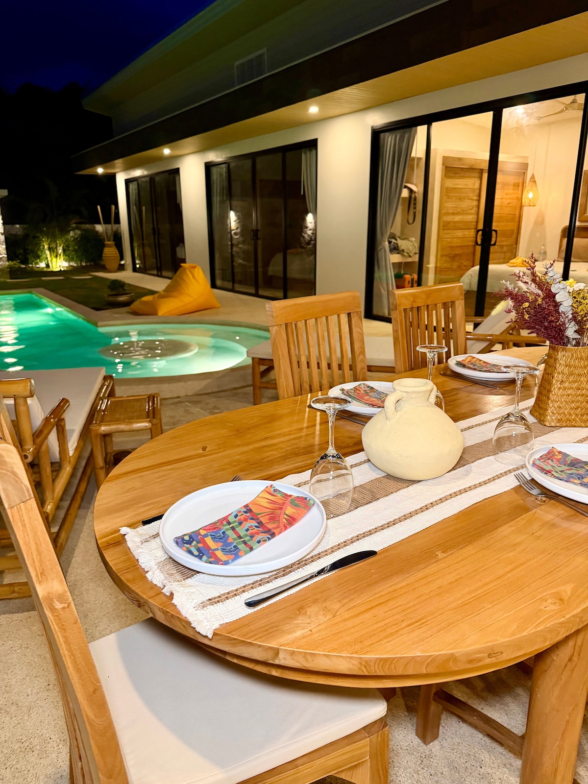 Villa privada de lujo frente a la playa en segunda fila (20 metros) con piscina privada de agua salada y acceso privado a la playa por pasarela. Totalmente aislada para una privacidad completa. Casa de playa tailandesa tradicional de nueva construcción con todas las comodidades y lujos modernos en el interior. Todo el equipamiento está incluido. Puede alojar hasta 4 adultos y 2 niños (cunas incluidas). Para tener una idea precisa, puedes leer todas las reseñas y comentarios de los viajeros aquí en Airbnb, ver las fotos y leer las descripciones.