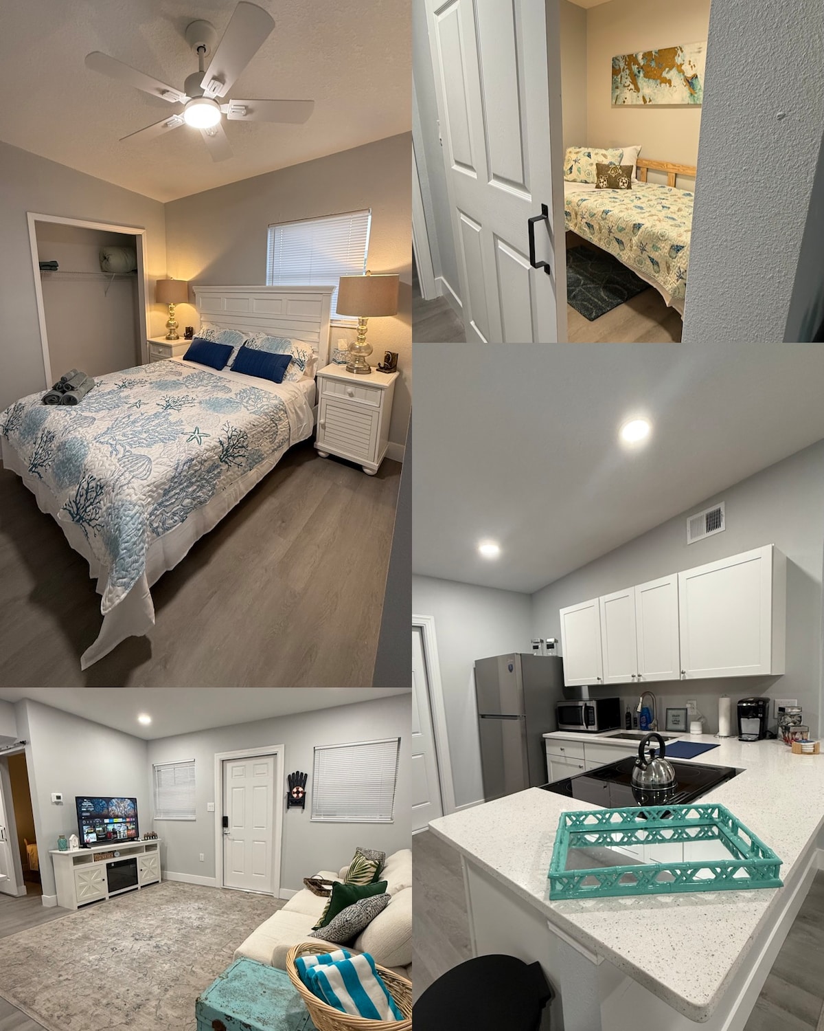 ¡Descubre tu escapada perfecta a solo 20 minutos de la playa! Esta encantadora casa ofrece dos dormitorios, uno con una cama tamaño queen, el otro con dos camas individuales. También hay un colchón de aire. La cocina totalmente equipada, los interiores decorados con buen gusto y los espacios renovados garantizan una estancia acogedora. Disfruta de wifi, amplio estacionamiento, un patio trasero vallado y un encantador porche delantero. Convenientemente ubicado a 20 minutos tanto de la playa como de Port Canaveral. ¡Tu retiro ideal te espera!