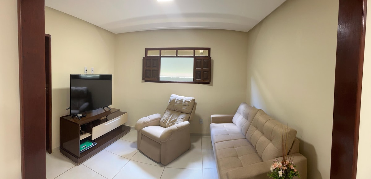 Ubicada en la ciudad de Bananeiras, junto a la Iglesia de Nuestra Señora del Livramento (Iglesia parroquial), esta acogedora casa cuenta con sala de estar, dos dormitorios, baño y cocina. También incluye una cama doble, una cama individual, un sofá cama, nevera, cocina, mesa con tres sillas y wifi. La casa no tiene garaje. Sin embargo, hay un área de estacionamiento frente a la iglesia principal. Está a cinco minutos del centro de la ciudad, cerca de los principales restaurantes y lugares de interés.
