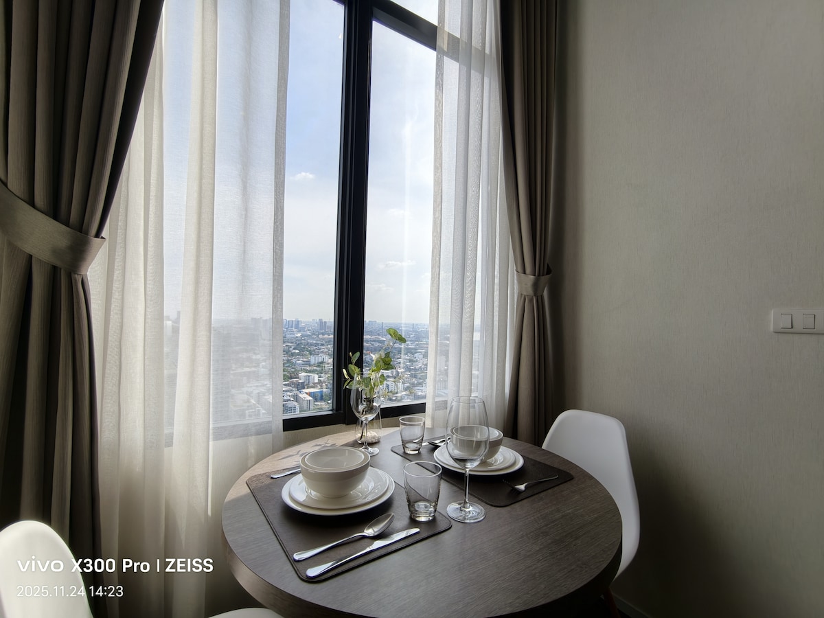 Calificación promedio: 5 de 5, 3 reseñasLoft de un dormitorio con bañera, espacio de oficina, piscina, gimnasio, cerca del tren ligero Sukhumvit, traslado al aeropuerto, a 5 minutos a pie del metro, acceso directo al centro de la ciudad