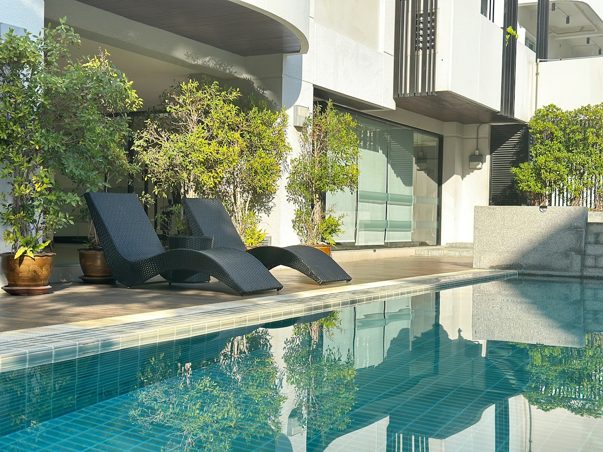 BTS Thong Lor, edificio bajo en el centro de la ciudad, zona rica japonesa y coreana #patio independiente/piscina extragrande/descuento mensual