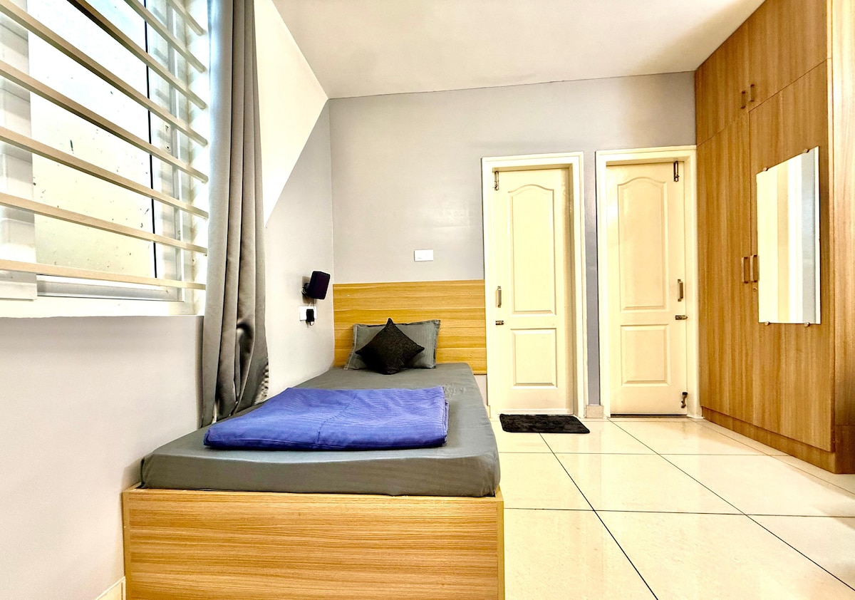 Nuestra acogedora propiedad de estudio privado ofrece todo lo necesario para una estancia cómoda. El estudio tiene una cama individual y no tiene aire acondicionado. Un punto culminante de este estudio es la cocina privada totalmente equipada. Además, hay un amplio escritorio de trabajo disponible con wifi dedicado. Hay una lavadora privada y un baño. La ubicación es una gran ventaja: a solo 3 km del IIM Bangalore y a solo 1 km del centro comercial Meenakshi Mall, Bannerghatta Road. Tendrás fácil acceso a tiendas, restaurantes y lugares de interés local.