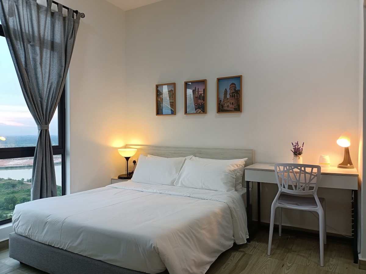 Nuestra elegante y ecológica suite de 1 dormitorio con vistas al jardín en Kanvas SOHO es perfecta para parejas, escalas o escapadas de fin de semana. A solo 25 km de KLIA/KLIA2 y a poca distancia a pie de Tapak Food Truck, D'Pulze Mall, Burger King, KK Mart, cafeterías y más. 🛏️ Acogedora cama tamaño queen y sofá cama 🌿 Hermosas vistas de Putrajaya 📶 Wifi de alta velocidad 🎬 Netflix 🏊♀️ Piscina infinita. Acceso al🌇 Sky Lounge y al gimnasio 🅿️ Aparcamiento gratuito 🚗 Fácil acceso a la autopista Disfruta de una estancia relajante con comodidades modernas, naturaleza y la comodidad de la ciudad.