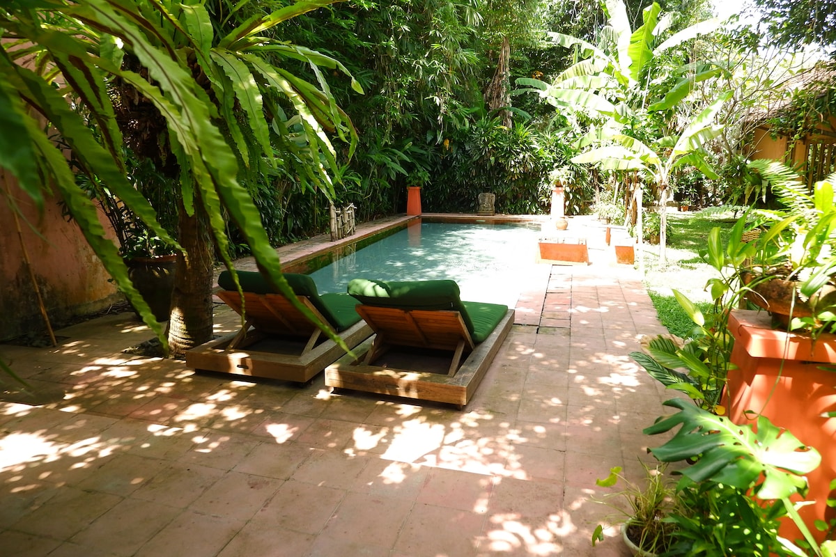 Te damos la bienvenida a Omah Gede Una casa de pueblo bellamente restaurada enclavada en un exuberante jardín tropical con piscina privada. Diseñado cuidadosamente con arte local seleccionado y muebles a medida, combina el encanto tradicional con la comodidad moderna. A un corto paseo de D'Omah Resort, donde los huéspedes pueden disfrutar de una deliciosa cocina, bebidas refrescantes y acceso completo a las instalaciones del complejo. Ubicado junto a un sagrado baniano centenario que se dice que trae buena suerte, y organizado por el renombrado diseñador y hotelero Warwick Purser.