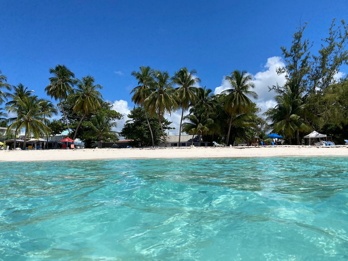 Alójate en esta elegante cabaña independiente de 1 dormitorio, cuidadosamente ubicada dentro de un complejo privado compartido que cuenta con una casa principal de 3 dormitorios en la parte delantera y una piscina comunitaria y un mirador ubicados en el centro entre ambas residencias. Maxwell Beach - 3 minutos Oistins - 5 minutos St. Lawrence Gap: 5 minutos Aeropuerto: 15 minutos Destaca un acogedor salón con televisor inteligente, cocina totalmente equipada con lavadora y secadora, aire acondicionado, cama tamaño queen y ducha de efecto lluvia estilo spa, un refugio ideal para parejas o viajeros solos.
