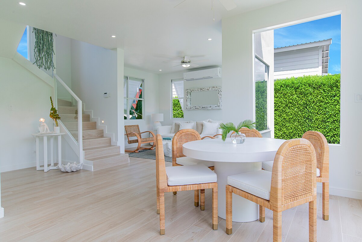La privacidad y la intimidad están garantizadas gracias a su aparcamiento semicubierto que conduce a su propia puerta principal. Una vez dentro, una piscina privada dentro del jardín soleado se extiende desde un espacio de comedor y cocina de planta abierta. Una sala de televisión y un tocador completan la planta baja con escaleras que ascienden a los dormitorios y baños. Otra escalera que envuelve una lámpara de araña extendida conduce a una terraza privada en la azotea con cocina al aire libre y terraza comedor, con vistas al mar occidental.