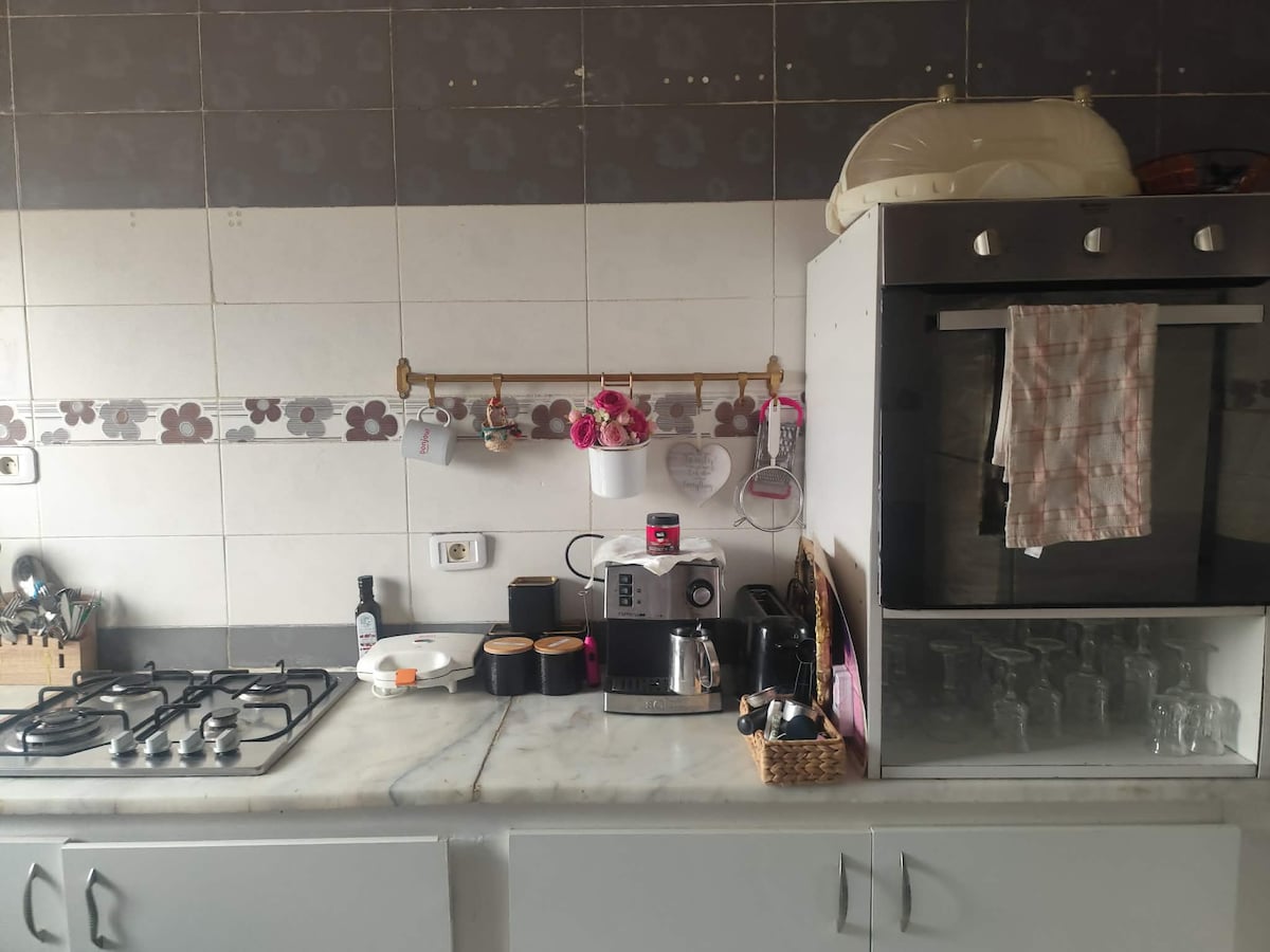 Welcome to Casamira، once grandma's home now vintage upcycled & renovated 2BR near Bardo with a King size bed and a shared terrace and garden -15 minutes drive from Tunis-Carthage Airport. -15 minutes drive from the Medina, the historical center of Tunis. -7 minutes drive from the Bardo National Museum. -3 minutes drive from a nearby supermarket. - 5 minutes walk from restaurants and coffee shops