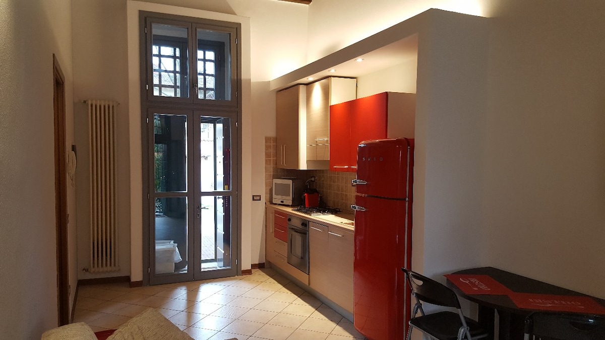 Un pequeño estudio: habitación acogedora con baño privado y cocina americana, cerca de Rho Fiera Milano y de la ciudad de Milán, para viajes de negocios o vacaciones. Te gustará nuestra casa por: la tranquilidad, la ubicación, los espacios exteriores, el ambiente y las anfitrionas. Nuestro alojamiento independiente es adecuado para todos: solteros, parejas, viajes de negocios, de estudio o vacaciones. Especialmente para los expositores o visitantes de Fiera Milano RHO. ¡Estamos a solo 6 km o a 2 paradas de tren!